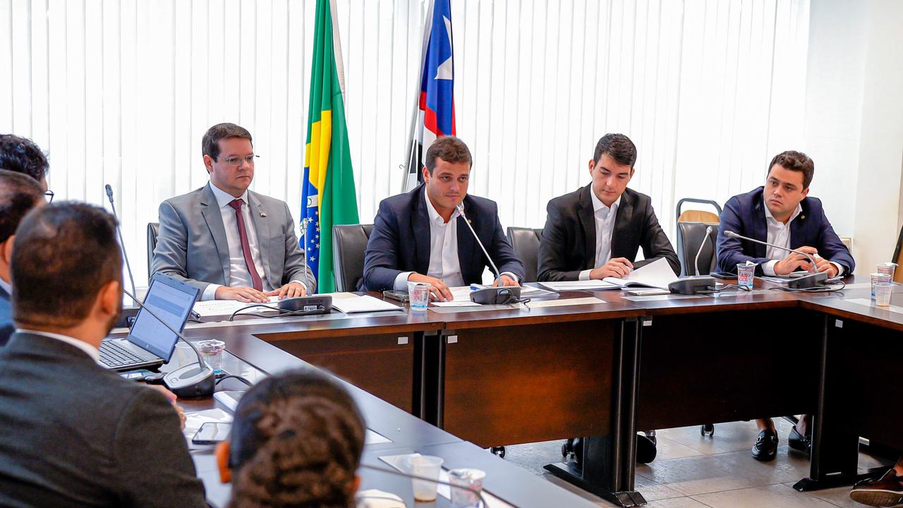 Presentes na audiência pública, o presidente da Comissão de Orçamento, Finanças, Fiscalização e Controle, deputado Glalbert Cutrim, e os deputados Fernando Braide e Leandro Bello.